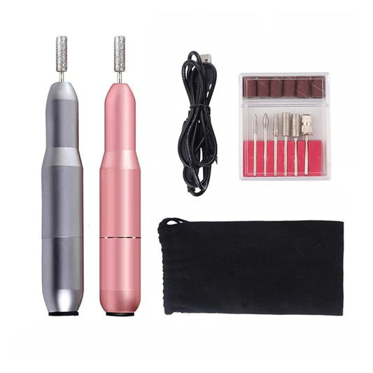 Fashion Electric Nail Drill Manicure Machine With Forward/Reverse Rotate Tools Portable Aluminum Material Nail File Nail Art Pen (Color : Pink)