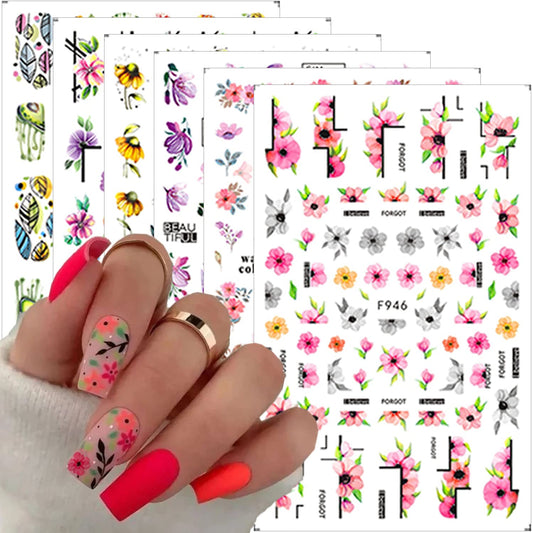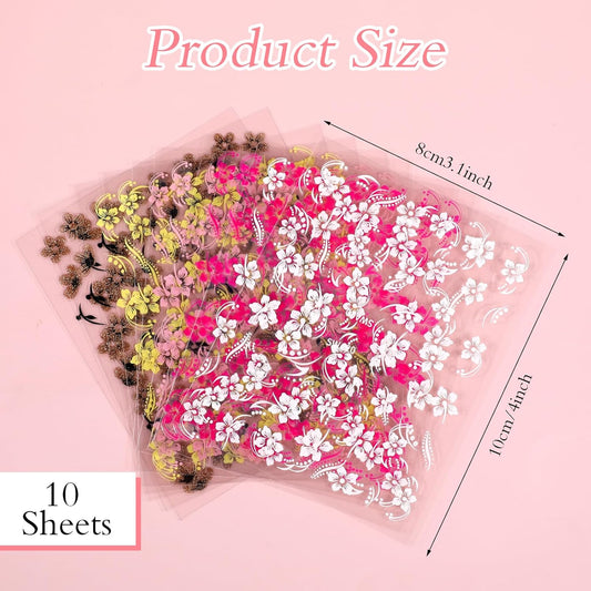 Flower Nail Stickers, 10PCS Nail Decals for Nail Art, 3D Nail Stickers Nail Art Stickers Hibiscus Flower Nail Design Stickers Fall Nail Decals Supplies for Women Girls Nail Art Decorations