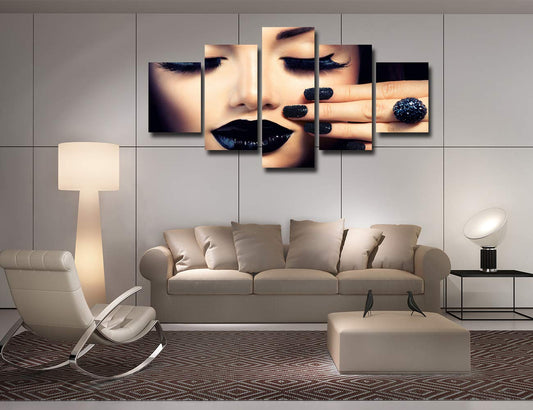 Beauty Fashion Girl with Black Makeup Canvas Art Wall Picture for Salon Decor Women Black Manicure Nail Art Poster Painting Framed Artwork Home Decorations Ready to Hang(60''Wx32''H)