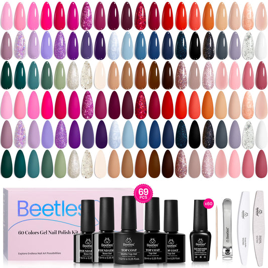 Beetles Cat Eye Gel Nail Polish Set-36 Colors Red Purple Brown Green Burgundy Magnetic Gel Nail Polish with Base Gel Glossy Matte Top Coat Magnet,Soak off UV Nail Gel Christmas DIY Nail Art Salon