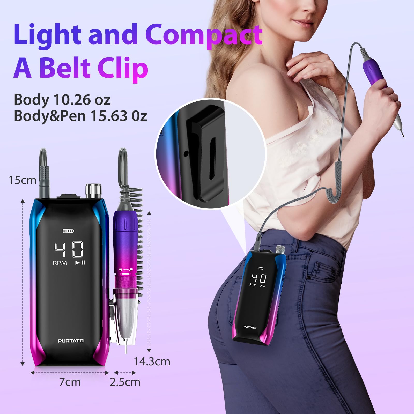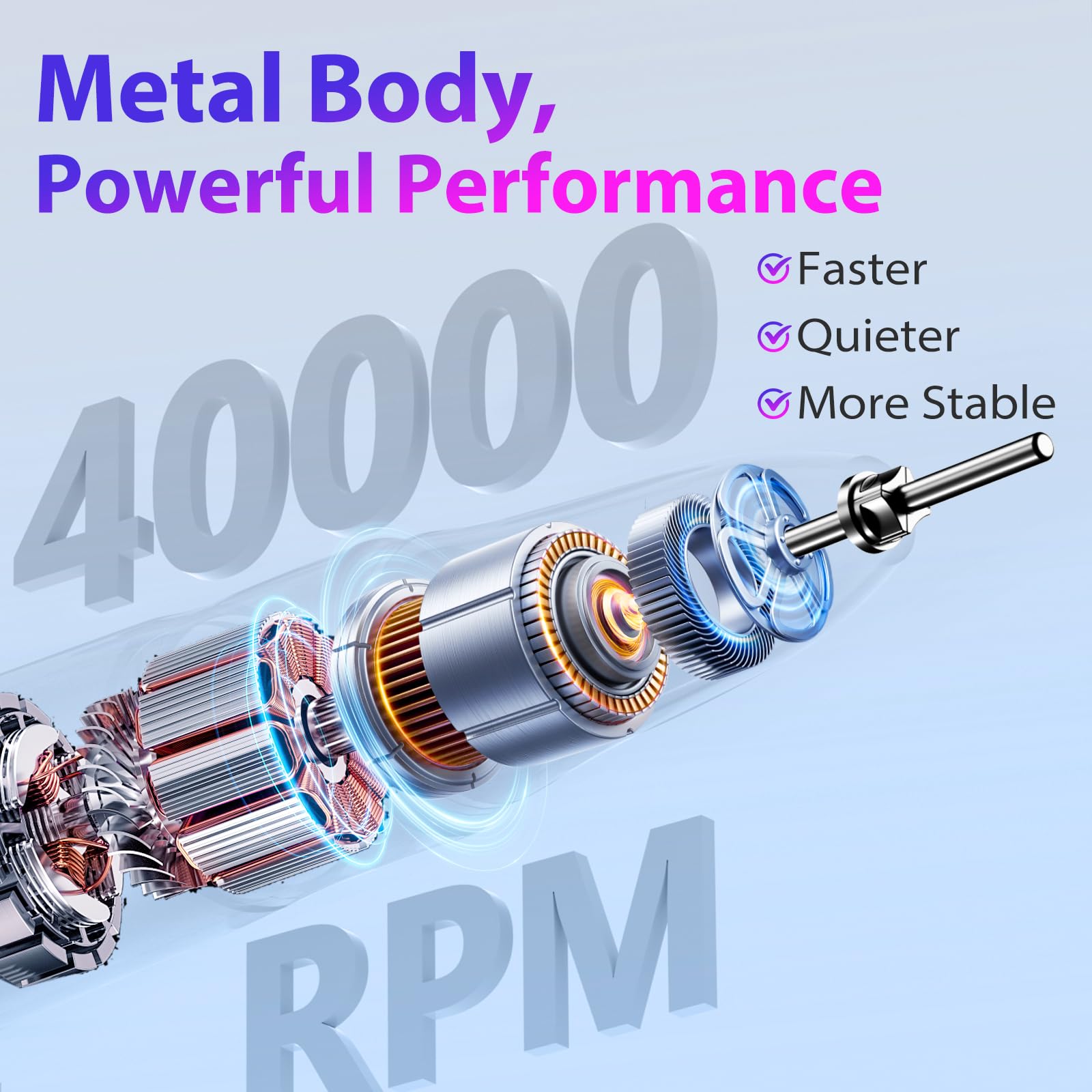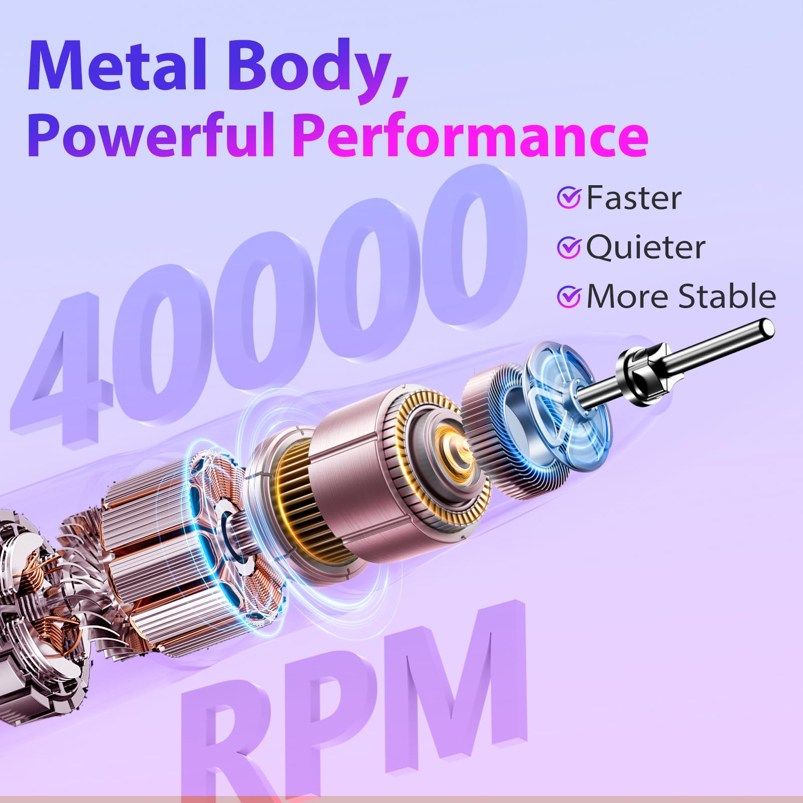 - 【Superior Performance & High RPM Motor】This nail drill professional is equipped with a high speed brushless motor, powerful 40,000 RPM motor, providing efficient drilling and polishing ability, ensuring polishing efficiency and precision, can quickly finish nail trimming, sanding and polishing work, all in a short period of time, improving efficiency for a fast and stable nail experience.
